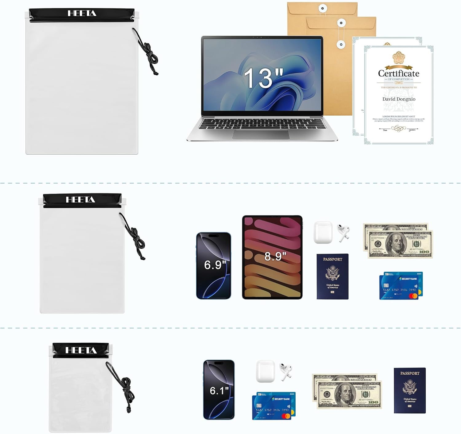 5-Pack Clear Waterproof Dry Bag, Water Tight Cases Pouch Dry Bags for Camera Mobile Phone Maps, Kayaking Boating Document Holder